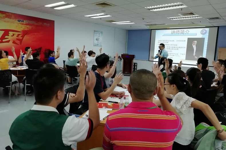 2018年8月17-18日寶嘉創(chuàng)業(yè)制衣廠(云?。┯邢薰窘M織了一場精彩紛呈的管理培訓(xùn)課程——《領(lǐng)袖的風(fēng)采》,影響力集團(tuán)核心金牌講師勞建民先生為70多名管理精英做了精彩的管理培訓(xùn)。培訓(xùn)中勞建民老師深入淺出地講解了卓越團(tuán)隊(duì)的9大理念、訂立立目標(biāo)的五大原則、杠杠管理、離場測試、猴子管理、領(lǐng)袖的9重洗禮等管理技巧與管理理念,并結(jié)合具體案例講解帶領(lǐng)團(tuán)隊(duì)從成功走向卓越……深入淺出、娓娓道來,在70多名學(xué)員中間產(chǎn)生了廣泛的共鳴,贏得了在場全體學(xué)員熱烈的掌聲。