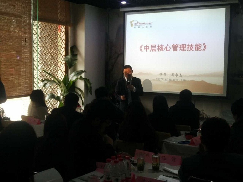 2017年3月18-19日,中國機器人行業(yè)的領(lǐng)先門戶——機器人在線公司針對公司的中高層管理者組織了一次管理課程短期培訓(xùn)班——中層管理者的核心技能,影響力集團金牌講師馬永志老師為30多名中高層主管做了精彩的培訓(xùn)。培訓(xùn)中馬老師深入淺出地講解了1.中高層管理者角色定位認知。2.卓越管理者組織溝通與會議管理。3.目標管理的步驟與方法。4.團隊成員的選用育留策略等并結(jié)合具體案例講解團隊成員的輔導(dǎo)與激勵念……深入淺出、娓娓道來,在學(xué)員中間產(chǎn)生了廣泛的共鳴,贏得了在場全體學(xué)員熱烈的掌聲。