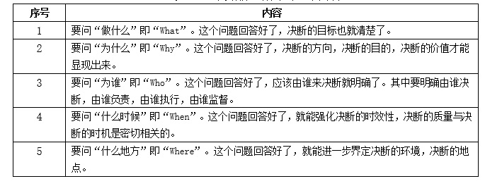 1、決斷前做好五個問答,可有效減少決斷的失誤。